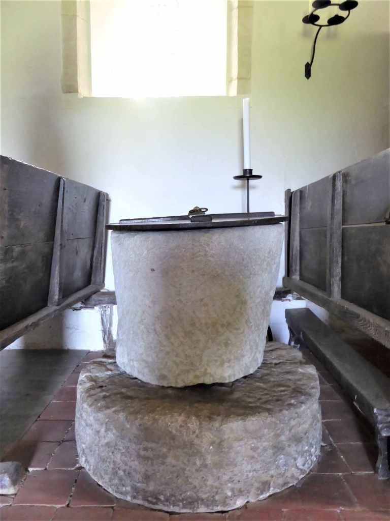 Again this is beautifully rustic. Ponder how old this might be (it is said to be one of the oldest in the country); how many babies would have been baptised in it over the centuries and ponder the passing of the generations. I always find this puts the woes of the current world into perspective; many of the babies baptised here would never have made it to adulthood. This crudely hewn piece of local stone is again likely ‘home-made’ and stands at a jaunty angle, with simple wooden lid. It is a thing of beauty that competes with the grandest of East Anglian ‘Wool Church’ fonts, made by master craftsmen.