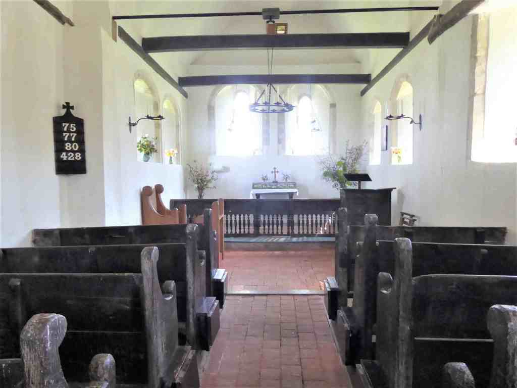 The exterior of the church architecturally is all ‘Early English’, ie it was all built around 1200 or maybe a bit earlier. The architecture itself is entirely unremarkable; just a simple one cell church which has thankfully been too remote and too poor ever to attract the attention of modernisers or restorers. You may notice that there’s a large repair on the South Eastern wall. Maybe this denoted a collapse at some time in the church’s long history? It would not be remarkable if, at one or more points in its long history, the church had been neglected; we only need to know that it’s now lovingly cared for. At the time of one of my recent visits, the churchyard was full of cowslips, sadly now not as common as they were in my childhood.